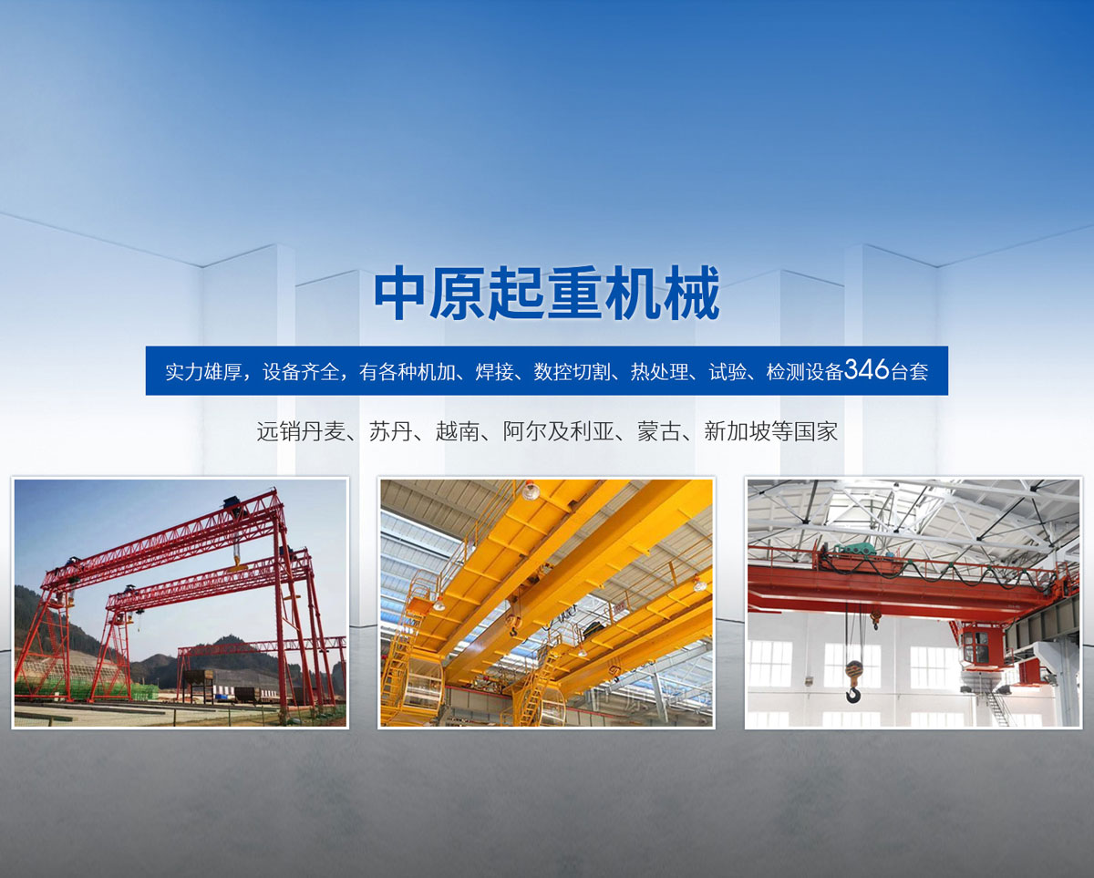 新鄉(xiāng)市中原起重機(jī)械有限公司成立于2000年,地處中原,輻射全國(guó)28個(gè)省市自治區(qū),設(shè)外埠經(jīng)銷(xiāo)處、辦事處268個(gè)。產(chǎn)品行銷(xiāo)工礦、建材、化工、冶金、電力、交通、鐵路、油田、港口等各個(gè)行業(yè)。遠(yuǎn)銷(xiāo)丹麥、蘇丹、越南、阿爾及利亞、蒙古、新加坡等國(guó)家。  公司實(shí)力雄厚,設(shè)備齊全,有各種機(jī)加、焊接、數(shù)控切割、熱處理、試驗(yàn)、檢測(cè)設(shè)備7臺(tái);有機(jī)加工、熱處理、單、雙梁橋門(mén)機(jī)生產(chǎn)、檢測(cè)、安裝等9個(gè)車(chē)間,研究中心、運(yùn)輸公司、安裝維修服務(wù)公司等機(jī)構(gòu),?  主要產(chǎn)品有:LD型1~20噸電動(dòng)單梁起重機(jī)系列產(chǎn)品;5~600噸通用橋式、門(mén)式、冶金、上旋轉(zhuǎn)下旋轉(zhuǎn)電磁吊、絕緣、抓斗、防爆起重機(jī)系列產(chǎn)品;LH3~100噸葫蘆雙梁系列產(chǎn)品;MH5~32噸葫蘆門(mén)式系列產(chǎn)品;0.5~40噸CD1、MD1鋼絲繩電葫蘆系列產(chǎn)品;HS1型0.5~20噸手動(dòng)葫蘆系列產(chǎn)品;0.5~10噸環(huán)鏈電動(dòng)葫蘆系列;0.5~40噸彎道電動(dòng)葫蘆系列產(chǎn)品;裝卸橋、造船門(mén)機(jī)、架橋機(jī)、鑄造吊和水電大噸位起重機(jī)系列產(chǎn)品。  公司建立了強(qiáng)有力的質(zhì)量保證體系和生產(chǎn)過(guò)程的質(zhì)量控制系統(tǒng),嚴(yán)格執(zhí)行國(guó)家設(shè)計(jì)、生產(chǎn)標(biāo)準(zhǔn),有嚴(yán)格的生產(chǎn)工藝過(guò)程和標(biāo)準(zhǔn),嚴(yán)格的檢驗(yàn)、檢測(cè)標(biāo)準(zhǔn)和手段。